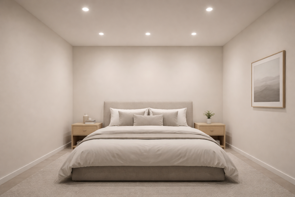 Bedrooms are not task-heavy spaces like kitchens or offices. They are used for winding down, reading, resting, and sleeping. Lighting here should support comfort first, brightness second.