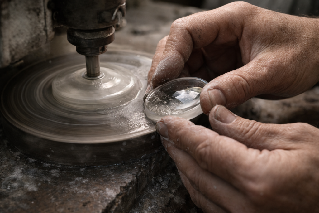 Before crystal can amplify light, it must be shaped by human hands — slowly, precisely, and with intention.