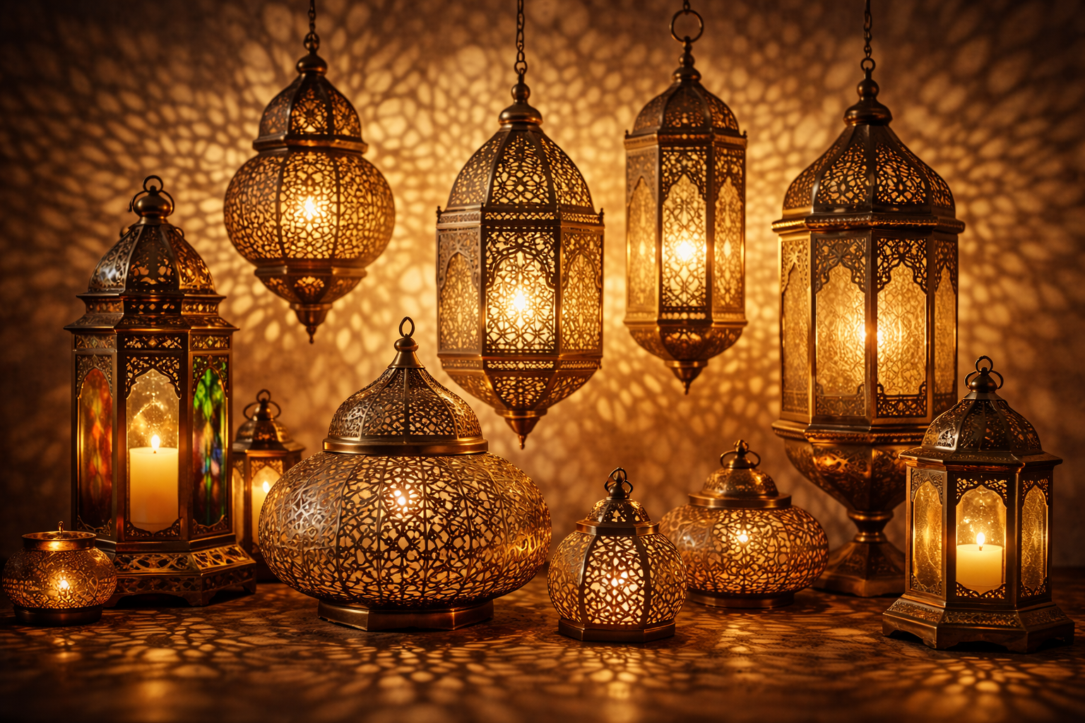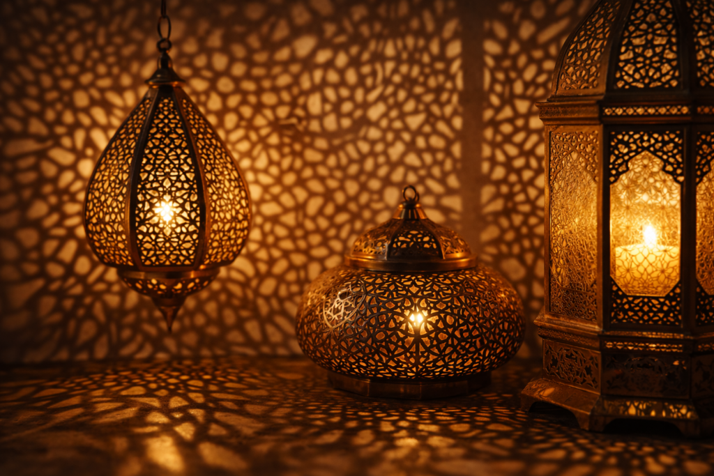 Long before electric light, homes across the Middle East were illuminated by pierced metal lamps that turned flame into pattern. Brass and copper were shaped, carved, and perforated by hand, allowing light to escape in delicate constellations across walls and ceilings.