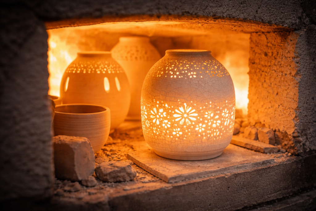 Ceramic light is a conversation between hand, mineral, and flame. From wheel to kiln, every decision shapes how glow will emerge. Thickness becomes atmosphere. Glaze becomes filter. Fire becomes editor.