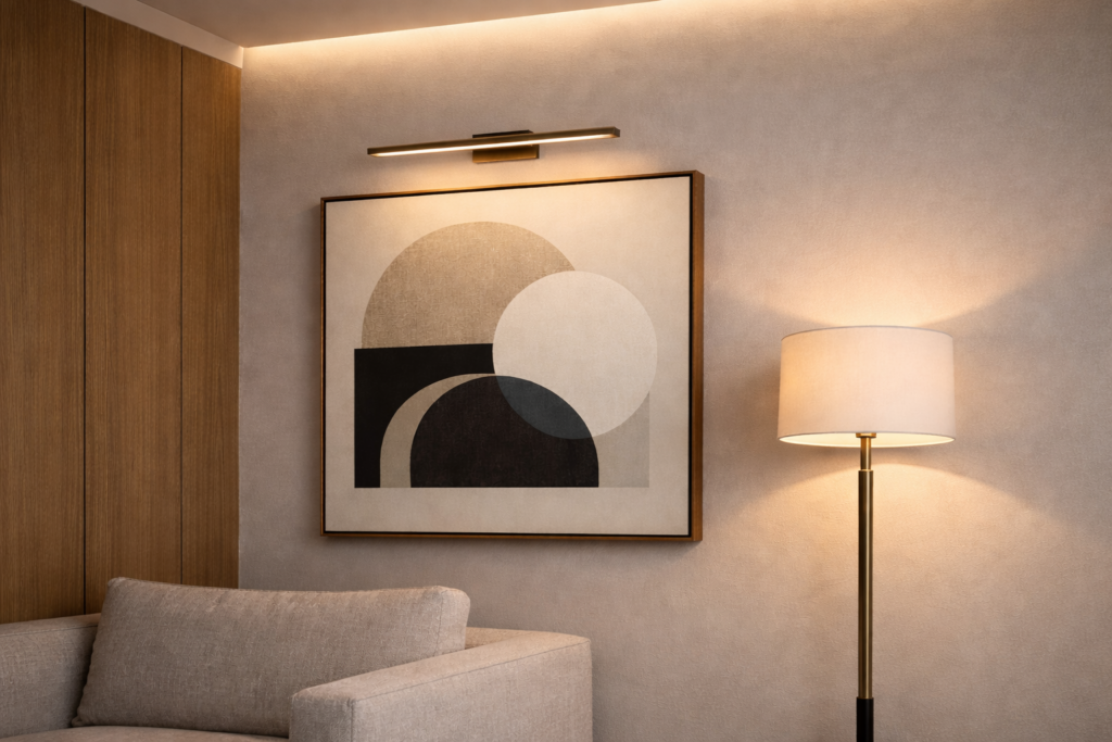 Introduce accent lighting: Wall washing, artwork lighting, and subtle uplighting prevent flatness and add depth.