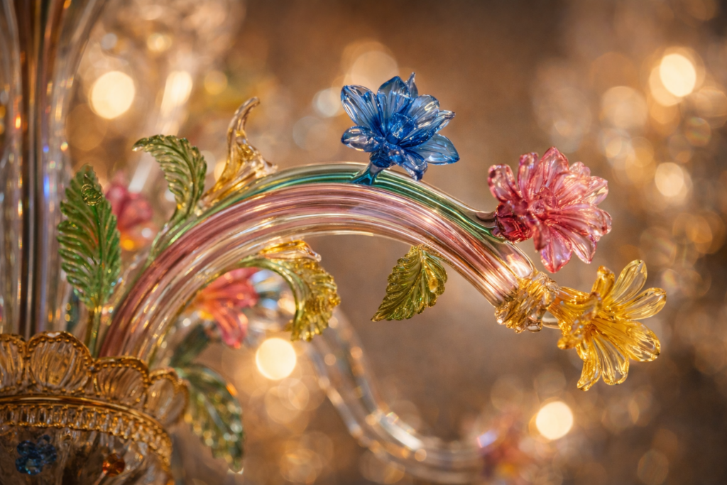 For more than seven centuries, Murano’s glassmakers have transformed molten sand into objects that shimmer, bend, and glow. Among their most enduring creations are chandeliers – not assembled from parts, but grown from fire. Each arm, leaf, and blossom is formed by hand, carrying within it the memory of heat and movement.
