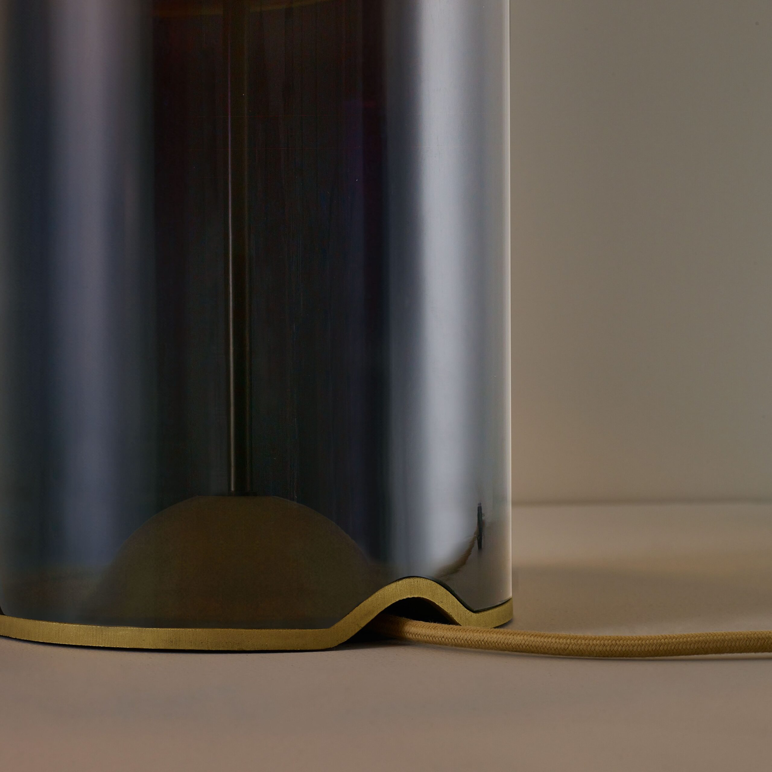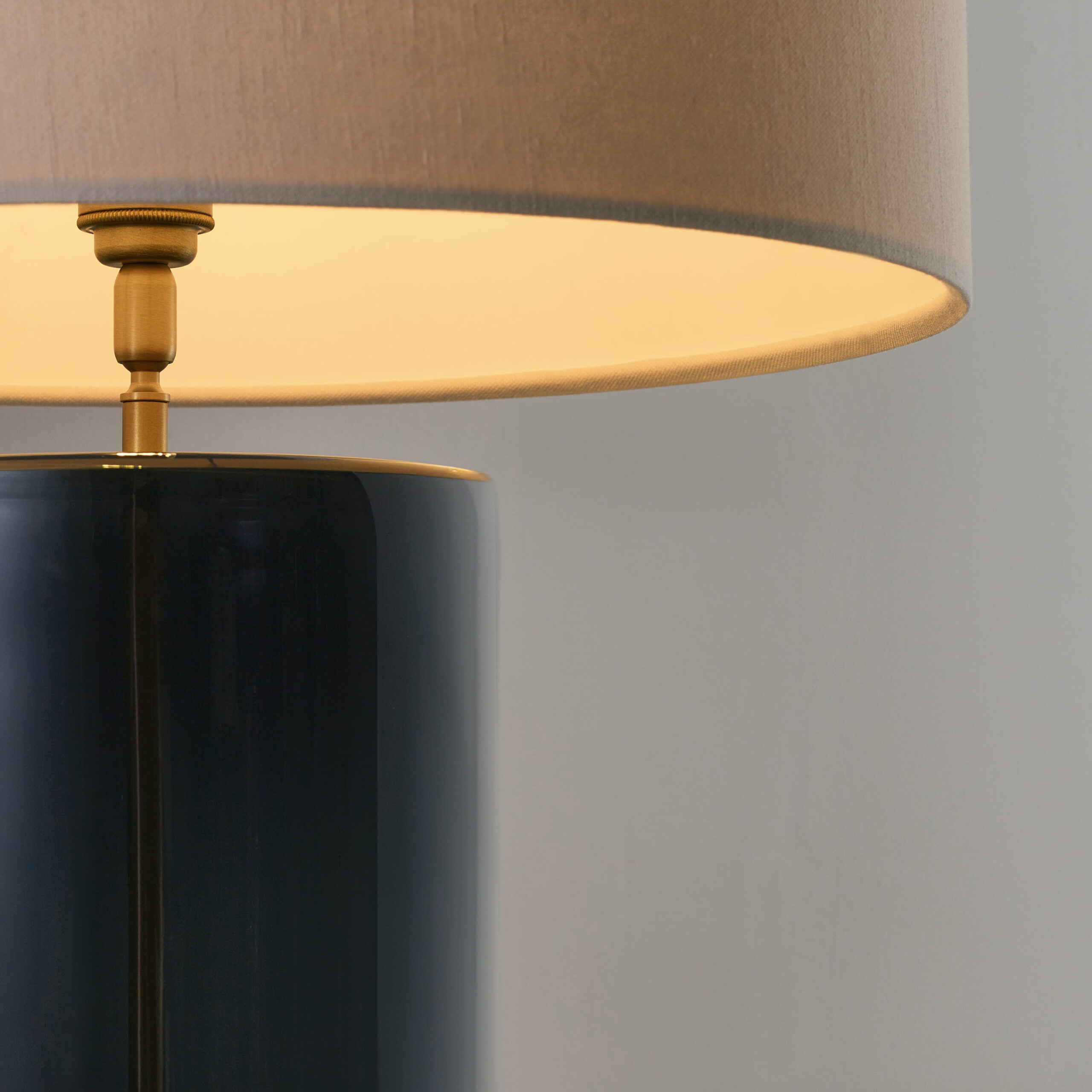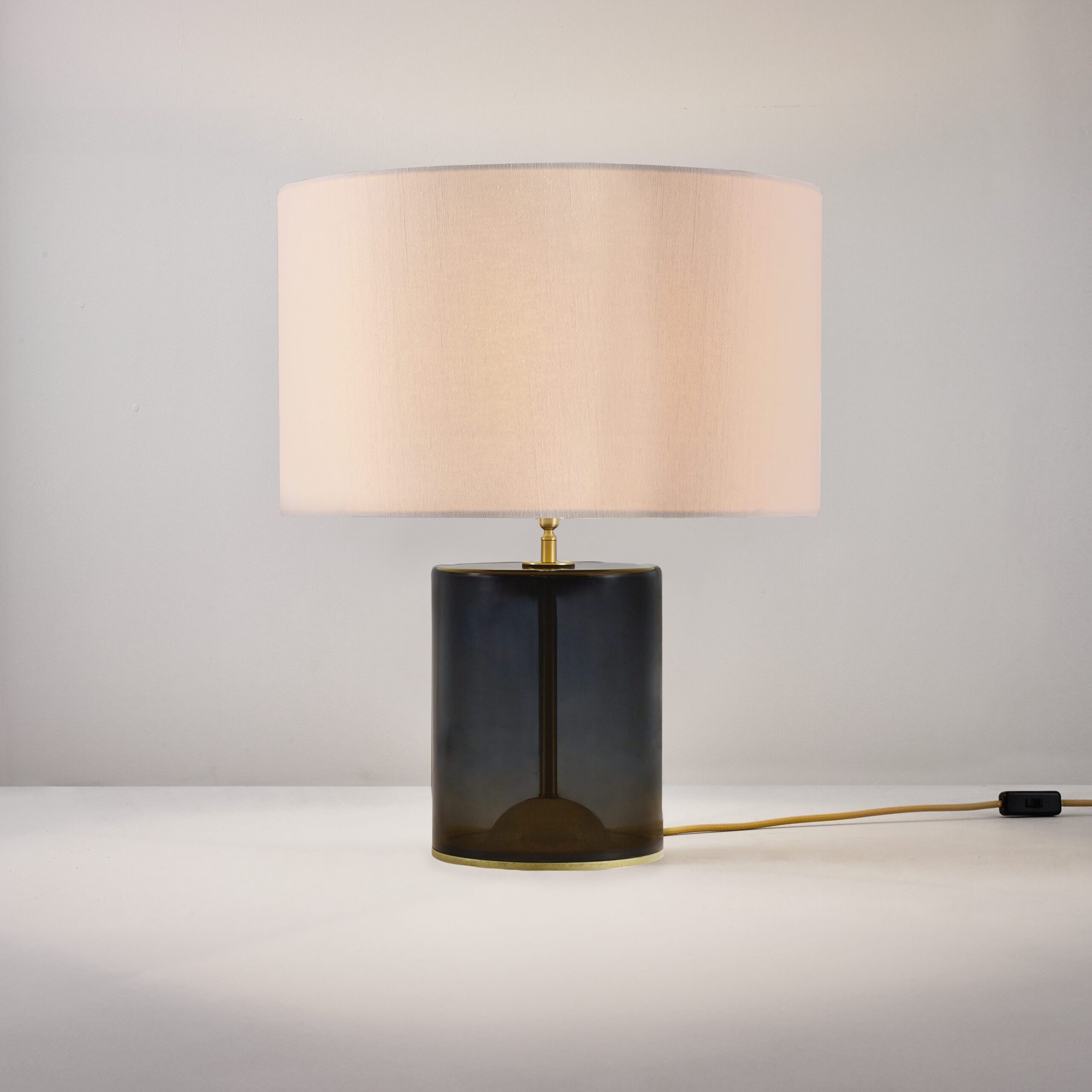 The Crosby Table Light is a wonderful study of refined simplicity and sophistication. Created with meticulous attention to detail by our craftspeople, this design elevates any interior with its fine materials and arresting finishes. Its appealing form is defined by two cylindrical shapes: the sleek, mouth blown glass base and the textured linen shade. The smooth anthracite glass creates a stunning contrast against the tactile allure of the fabric shade. Every detail of Crosby feels considered: The base is sandcast from solid brass, which is then sandblasted to give it a rich textured finish. It extends from a gentle dome within the glass, which is ground down to match the form to create a neat opening for the cable. The result is a crisp and clean appearance, enriched by warm and interesting textures. Completing the look is its sand cotton braided cable. Crosby also features a ball joint in satin brass, allowing you to effortlessly tilt the shade for optimal reading illumination.