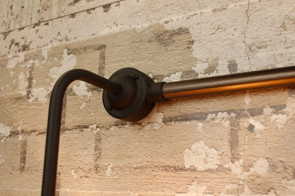 Get a unique industrial style look with this conduit pipe wall light. The gold finish gives the piping a modern look, whilst the double black arms and beige pleated shades contrast perfectly.