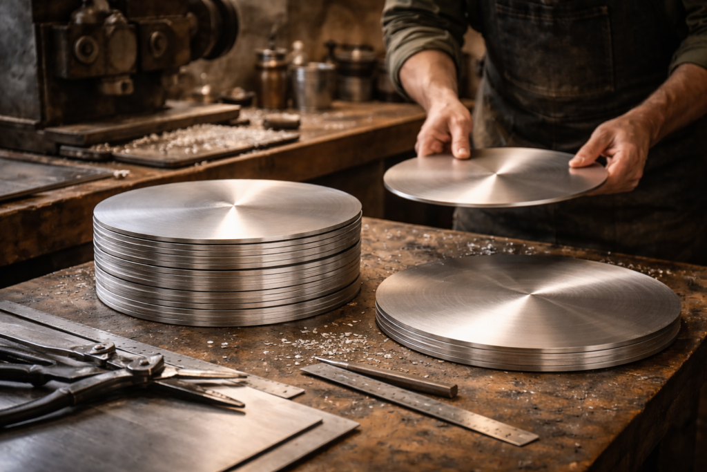 Every shade begins as a flat circle of aluminium. At this stage it has no depth and no function—only potential. During spinning, that single disc is drawn into form without seams, joints, or adhesives. The finished shade remains one continuous piece of metal, shaped entirely by pressure and rotation.