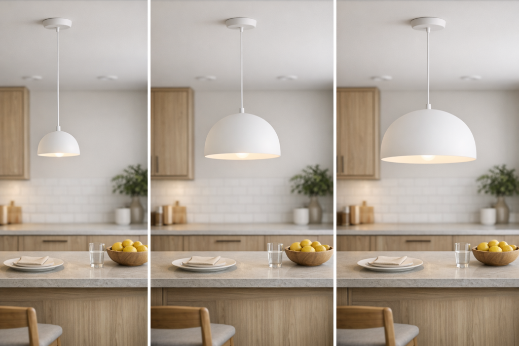 Pendant size controls more than appearance. It affects how light spreads, how much glare is created, and whether the fixture feels visually heavy or calm.