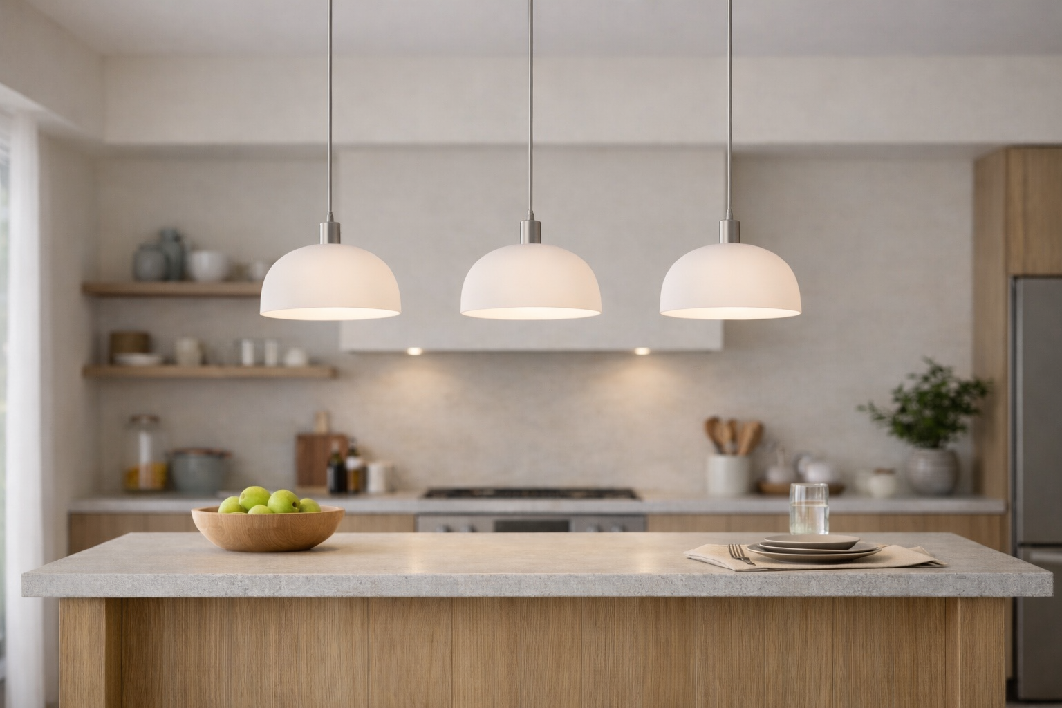A common mistake is choosing pendants based on island length. Instead, size them to the depth of the island so they do not dominate the space visually.
